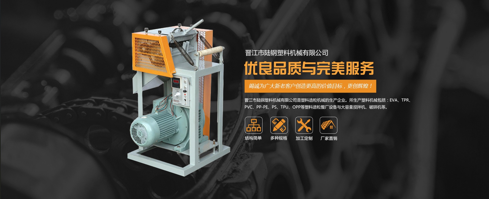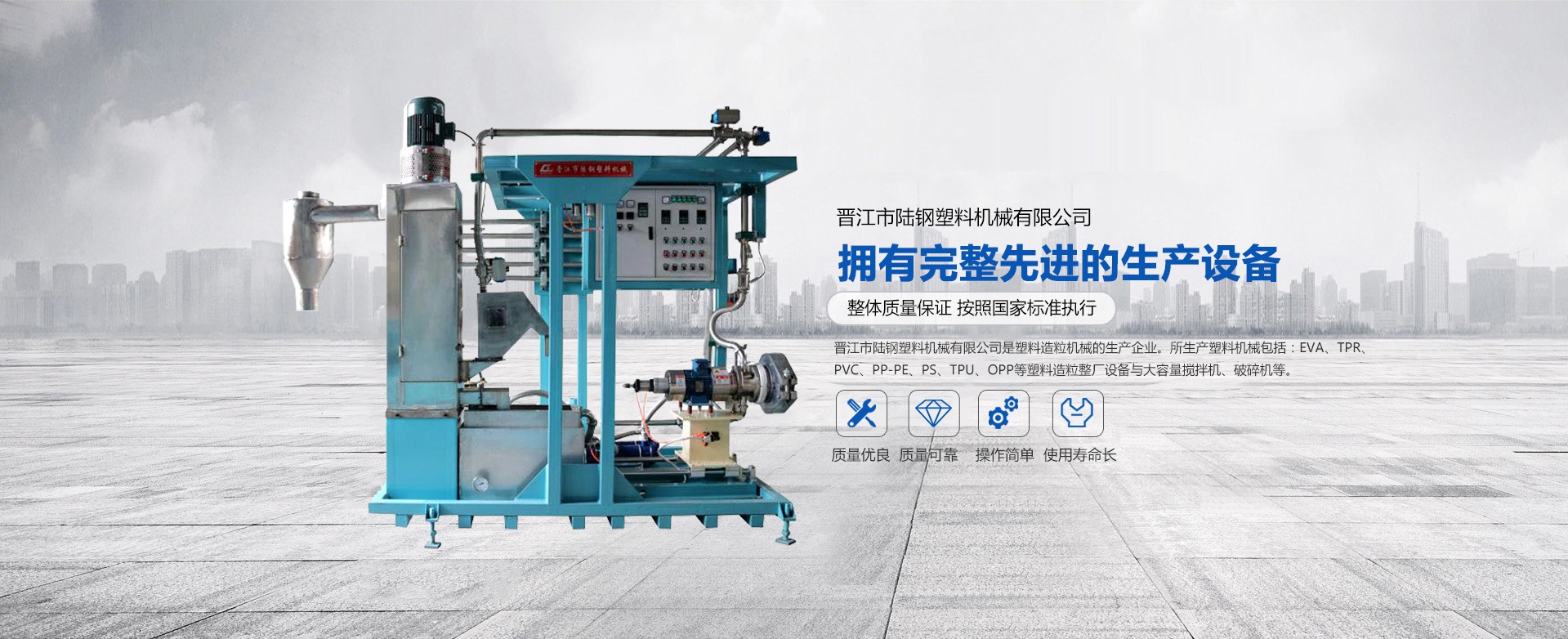 晉江市陸鋼塑料機械有限公司是塑料造粒機械的生產企業(yè)。所生產塑料機械包括:EVA、TPR、PVC、PP-PE、PS、TPU、OPP等塑料造粒整廠設備與大容量攪拌機、破碎機等。